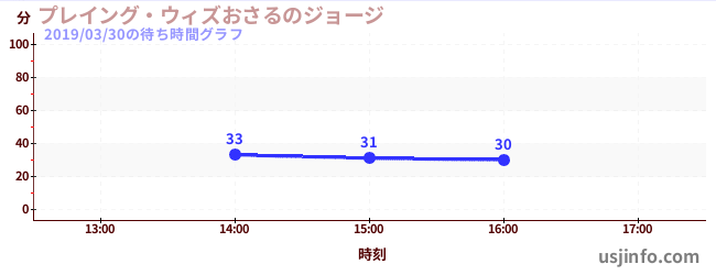 • プレイング・ウィズおさるのジョージ$B$N(B2019年03月30日の待ち時間