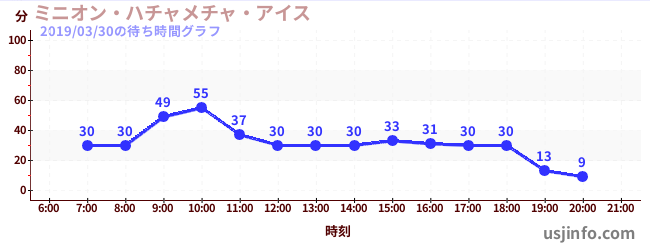 • ミニオン・ハチャメチャ・アイス$B$N(B2019年03月30日の待ち時間