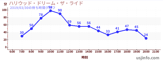 • ハリウッド・ドリーム・ザ・ライド$B$N(B2019年03月30日の待ち時間
