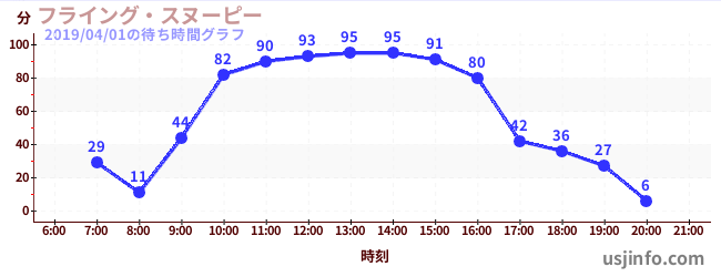 • フライング・スヌーピー$B$N(B2019年04月01日の待ち時間