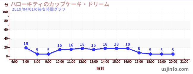 • ハローキティのカップケーキ・ドリーム$B$N(B2019年04月01日の待ち時間