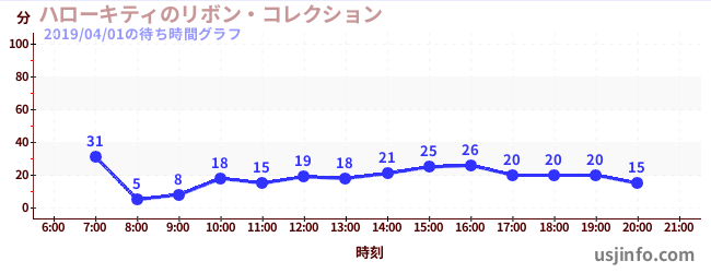 • ハローキティのリボン・コレクション$B$N(B2019年04月01日の待ち時間