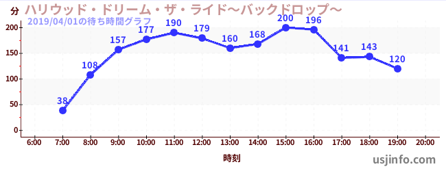 • ハリウッド・ドリーム・ザ・ライド〜バックドロップ〜$B$N(B2019年04月01日の待ち時間