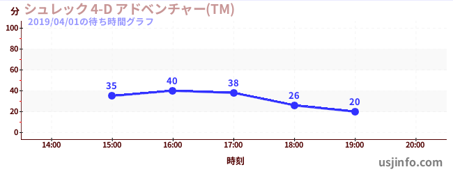 • シュレック 4-D アドベンチャー(TM)$B$N(B2019年04月01日の待ち時間