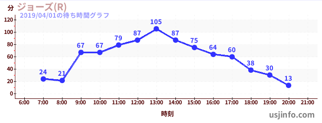 • ジョーズ(R)$B$N(B2019年04月01日の待ち時間