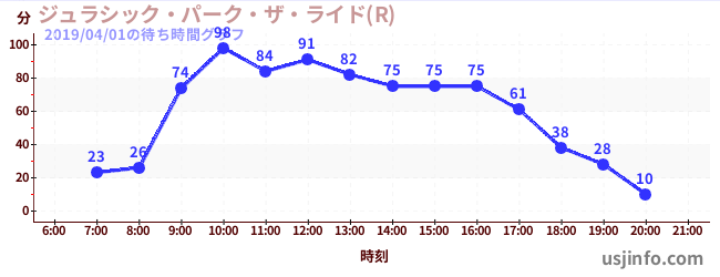 • ジュラシック・パーク・ザ・ライド(R)$B$N(B2019年04月01日の待ち時間