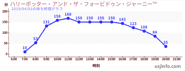 • ハリーポッター・アンド・ザ・フォービドゥン・ジャーニー™$B$N(B2019年04月01日の待ち時間