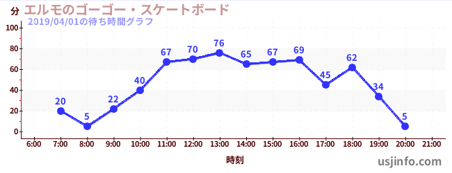 • エルモのゴーゴー・スケートボード$B$N(B2019年04月01日の待ち時間