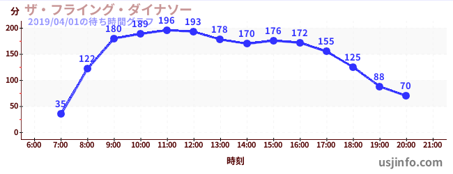 • ザ・フライング・ダイナソー$B$N(B2019年04月01日の待ち時間