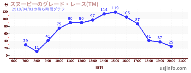 • スヌーピーのグレード・レース(TM)$B$N(B2019年04月01日の待ち時間
