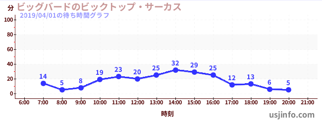 • ビッグバードのビックトップ・サーカス$B$N(B2019年04月01日の待ち時間