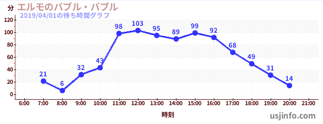 • エルモのバブル・バブル$B$N(B2019年04月01日の待ち時間