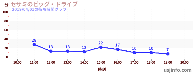 • セサミのビッグ・ドライブ$B$N(B2019年04月01日の待ち時間