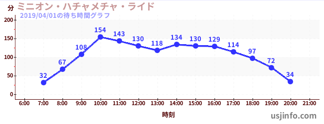 • ミニオン・ハチャメチャ・ライド$B$N(B2019年04月01日の待ち時間