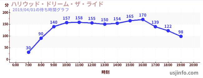 • ハリウッド・ドリーム・ザ・ライド$B$N(B2019年04月01日の待ち時間