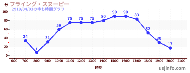 • フライング・スヌーピー$B$N(B2019年04月03日の待ち時間