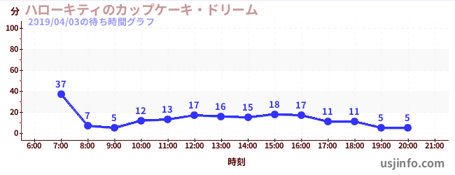 • ハローキティのカップケーキ・ドリーム$B$N(B2019年04月03日の待ち時間