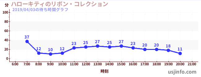 • ハローキティのリボン・コレクション$B$N(B2019年04月03日の待ち時間