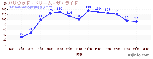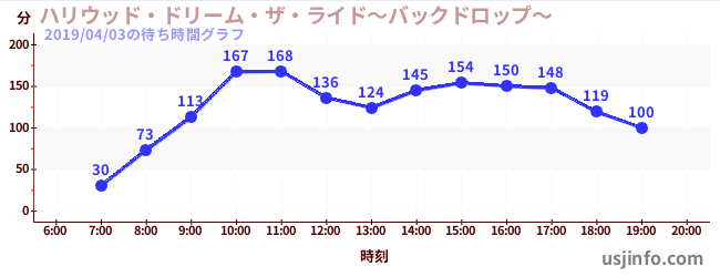 • ハリウッド・ドリーム・ザ・ライド$B$N(B2019年04月03日の待ち時間