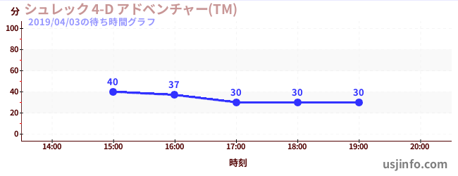 • シュレック 4-D アドベンチャー(TM)$B$N(B2019年04月03日の待ち時間