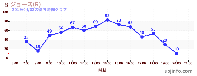 • ジョーズ(R)$B$N(B2019年04月03日の待ち時間