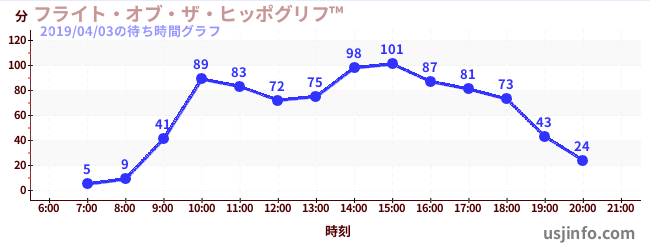 • フライト・オブ・ザ・ヒッポグリフ™$B$N(B2019年04月03日の待ち時間