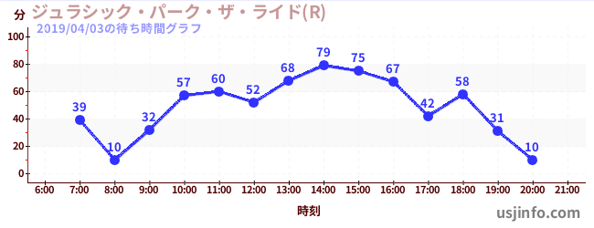 • ジュラシック・パーク・ザ・ライド(R)$B$N(B2019年04月03日の待ち時間