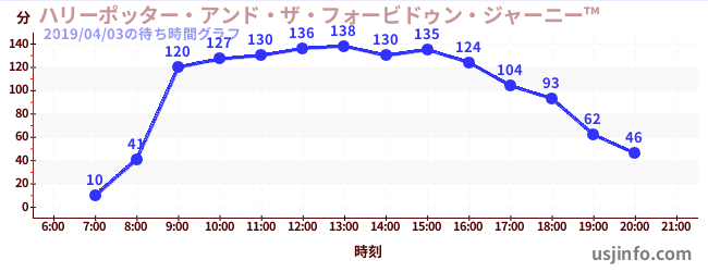 • ハリーポッター・アンド・ザ・フォービドゥン・ジャーニー™$B$N(B2019年04月03日の待ち時間