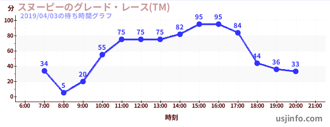 • スヌーピーのグレード・レース(TM)$B$N(B2019年04月03日の待ち時間