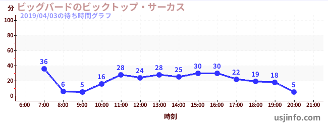 • ビッグバードのビックトップ・サーカス$B$N(B2019年04月03日の待ち時間