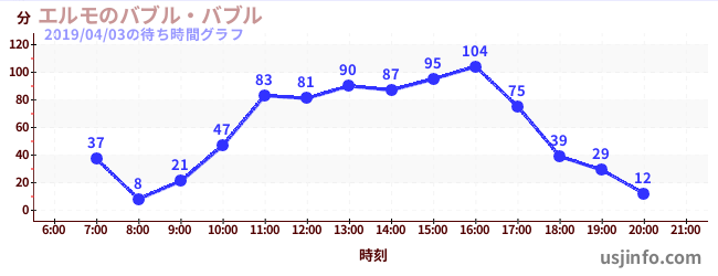 • エルモのバブル・バブル$B$N(B2019年04月03日の待ち時間
