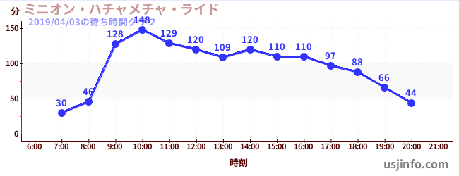 • ミニオン・ハチャメチャ・ライド$B$N(B2019年04月03日の待ち時間