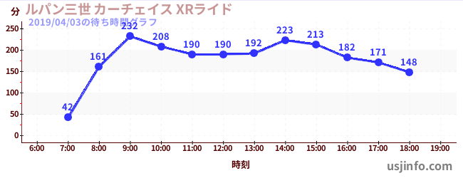 • ルパン三世 カーチェイス XRライド$B$N(B2019年04月03日の待ち時間