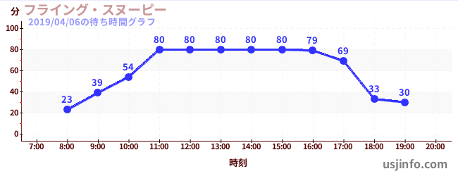• フライング・スヌーピー$B$N(B2019年04月06日の待ち時間