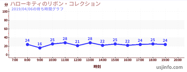 • ハローキティのリボン・コレクション$B$N(B2019年04月06日の待ち時間
