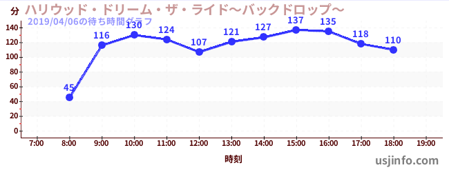 • ハリウッド・ドリーム・ザ・ライド〜バックドロップ〜$B$N(B2019年04月06日の待ち時間