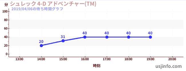 • シュレック 4-D アドベンチャー(TM)$B$N(B2019年04月06日の待ち時間