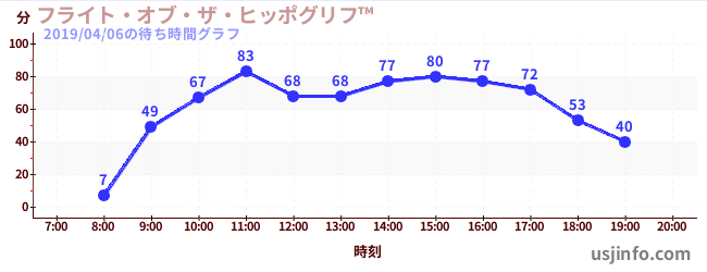 • フライト・オブ・ザ・ヒッポグリフ™$B$N(B2019年04月06日の待ち時間