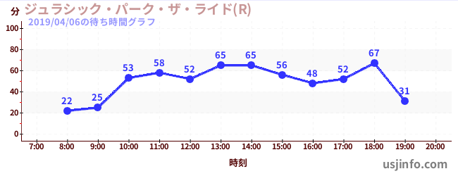 • ジュラシック・パーク・ザ・ライド(R)$B$N(B2019年04月06日の待ち時間