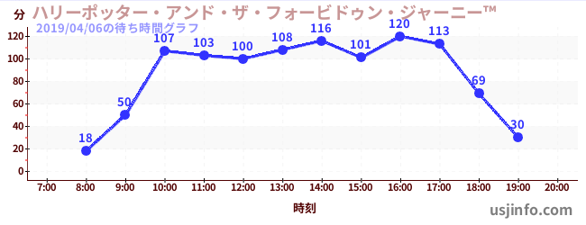 • ハリーポッター・アンド・ザ・フォービドゥン・ジャーニー™$B$N(B2019年04月06日の待ち時間