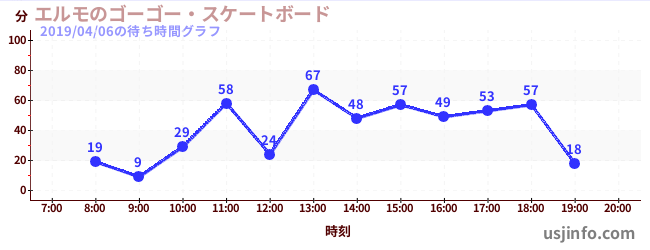 • エルモのゴーゴー・スケートボード$B$N(B2019年04月06日の待ち時間