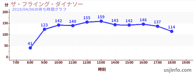 • ザ・フライング・ダイナソー$B$N(B2019年04月06日の待ち時間