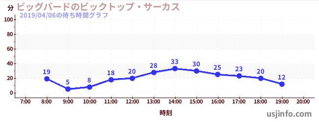 • ビッグバードのビックトップ・サーカス$B$N(B2019年04月06日の待ち時間