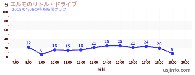 • エルモのリトル・ドライブ$B$N(B2019年04月06日の待ち時間