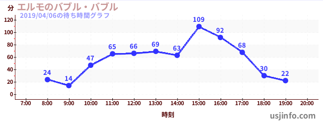 • エルモのバブル・バブル$B$N(B2019年04月06日の待ち時間