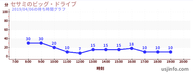 • セサミのビッグ・ドライブ$B$N(B2019年04月06日の待ち時間