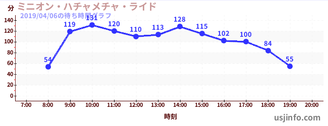 • ミニオン・ハチャメチャ・ライド$B$N(B2019年04月06日の待ち時間