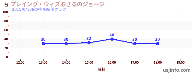• プレイング・ウィズおさるのジョージ$B$N(B2019年04月06日の待ち時間