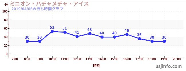 • ミニオン・ハチャメチャ・アイス$B$N(B2019年04月06日の待ち時間