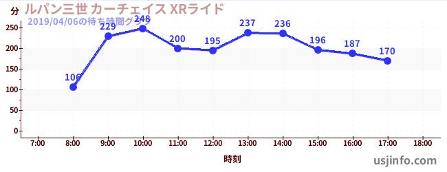 • ルパン三世 カーチェイス XRライド$B$N(B2019年04月06日の待ち時間